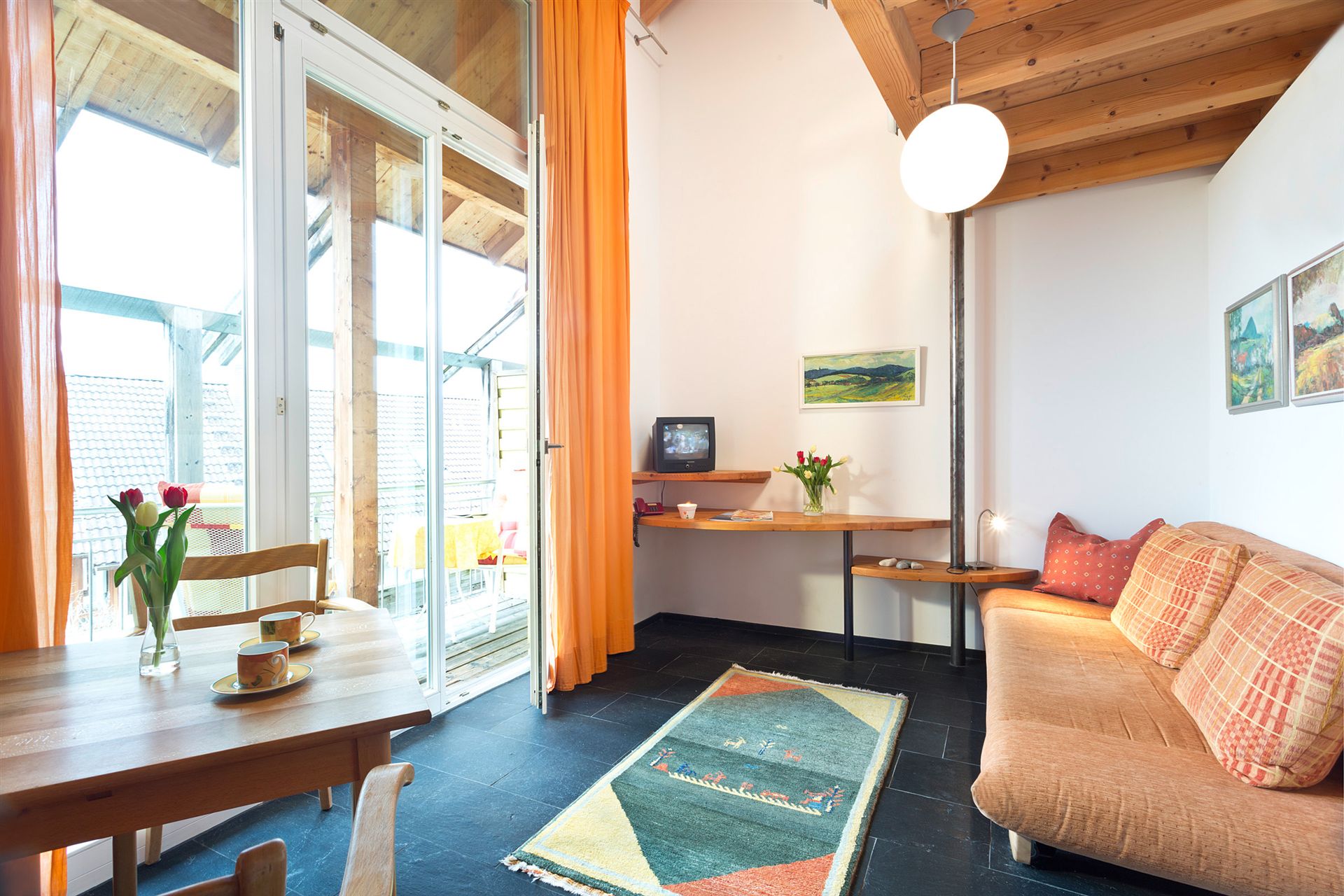 Geschmackvoll eingerichtete Gästezimmer, alle mit Balkon/Seesicht, Bad oder Dusche/WC, TV und Kühlschrank, bieten durch die ungewöhnliche Aufteilung von Wohn- und Schlafbereich, eine besonders heimelige Atmosphäre.